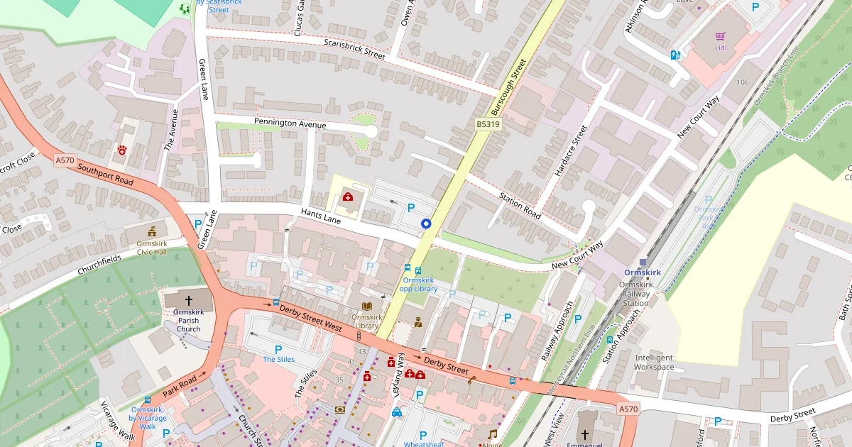 Hants Lane Car Park is a car park in Ormskirk on Burscough St. Free to use.