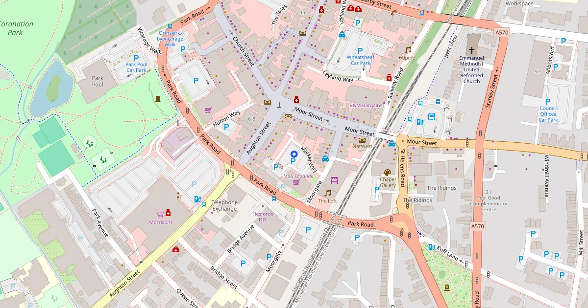 Market Way Pay and Display Car Park is a car park in Ormskirk on Moor St. Free to use.