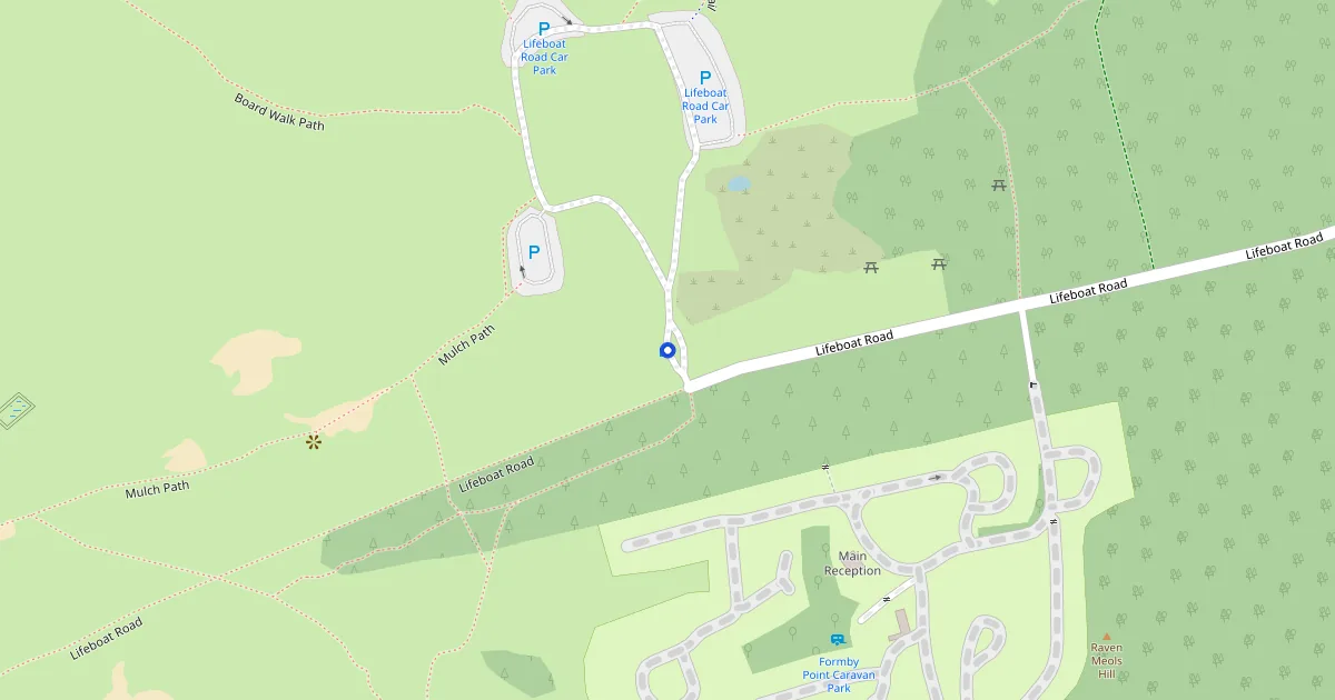 The main car park for the National Trust Formby pinewoods and beach. It's on Lifeboat Road and puts you a short walk from the red squirrel trail and the dunes. Pay via the NT app before you get there — signal in the car park is unreliable and there's no paper ticket option. NT members park free. It fills up early on summer weekends; if it's full, try the Victoria Road car park a mile north. Dogs welcome. Postcode L37 2EB gets you here on Google Maps.